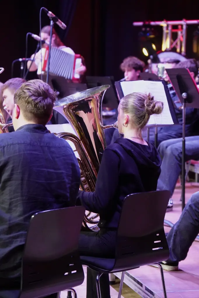 Beim diesjährigen Winterkonzert wurde einmal mehr deutlich, was die Schüler:innen der Bläserklassen Woche für Woche im Unterricht erarbeiten. Mit Stücken wie Pirates of the Caribbean oder How to Train Your Dragon zeigten die jungen Musiker:innen ihr Können und ihre Begeisterung für die Blasmusik.