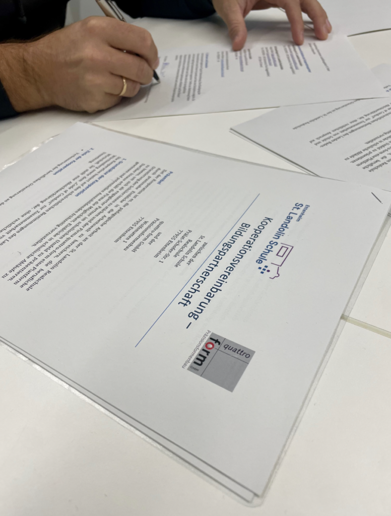 Was seit Jahrzehnten gewachsen ist, wurde nun offiziell: Die St. Landolin Realschule und das Ettenheimer Unternehmen quattro-form haben eine Bildungspartnerschaft geschlossen. Die langjährige enge Zusammenarbeit mit dem mittelständischen Betrieb wurde damit auf eine neue, verbindliche Ebene gehoben.