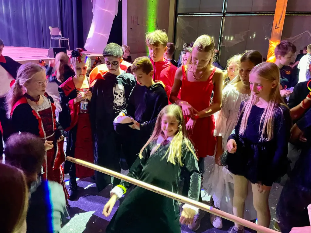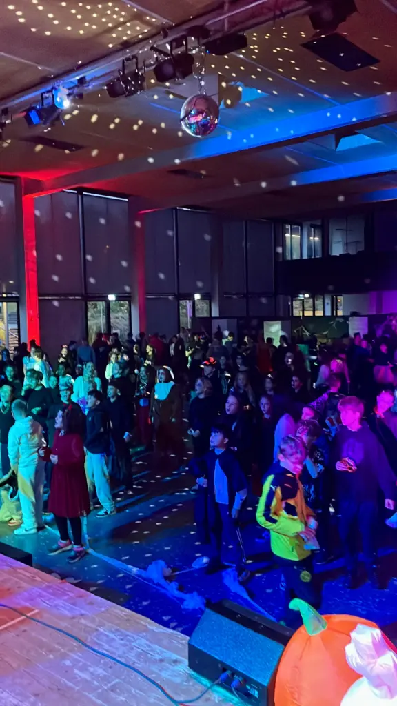 Die DJs warteten mit den Lieblingssongs der Klassen auf, es wurde Limbo getanzt und die Tanzleiterinnen auf der Bühne animierten unermüdlich zum Mit-tanzen: Jungs gegen Mädchen oder Mädchen gegen Jungs?! Oder einfach miteinander: Hexen, Vampire, Zauberer, Zombies und Gespenster! Die gruselige Meute tanzte und sang, bis das letzte Lied ertönte und der Abend ausklang.