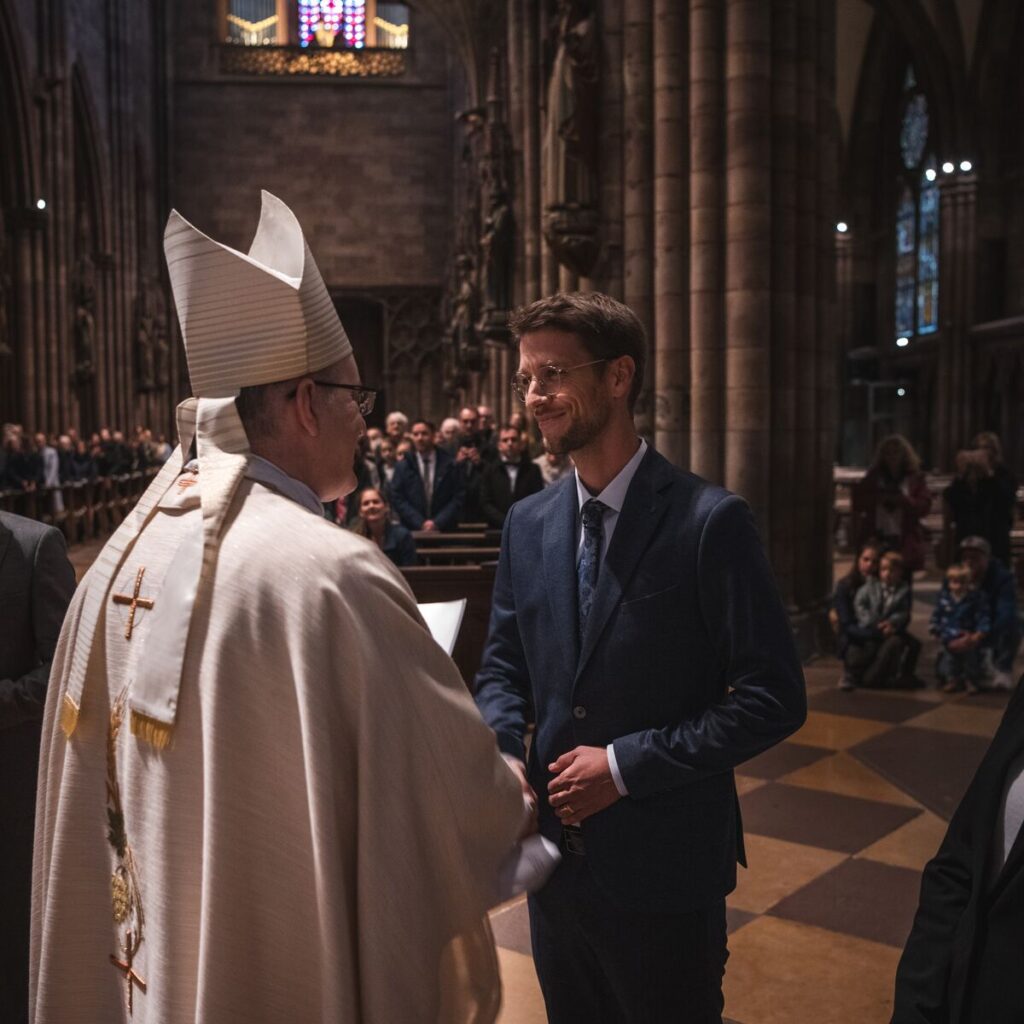 Seit dem 24. Oktober 2025 dürfen wir uns jetzt ganz offiziell über unseren neuen Schulseelsorger an unserer Schule freuen: Johannes Veith wurde im Rahmen eines feierlichen Gottesdienstes im Freiburger Münster offiziell durch Weihbischof Dr. Christian Würtz in diesen besonderen Dienst berufen.