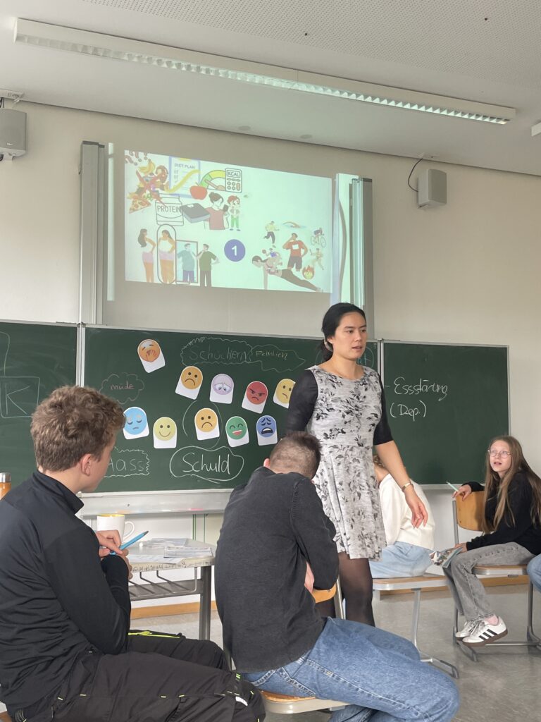 Derzeit arbeitet Anne-Sophie Reißig in eintägigen Workshops mit allen Schüler:innen der 7. Klassen unserer Schule rund um das große Thema Essen, Körper und Selbstbewusstsein. Den Schüler:innen werden praktische Ansätze zum Umgang mit Trends, Social Media und dem Körperselbstbild vermittelt, die den Selbstwert, die Körperwahrnehmung und Schutzstrategien fördern können.